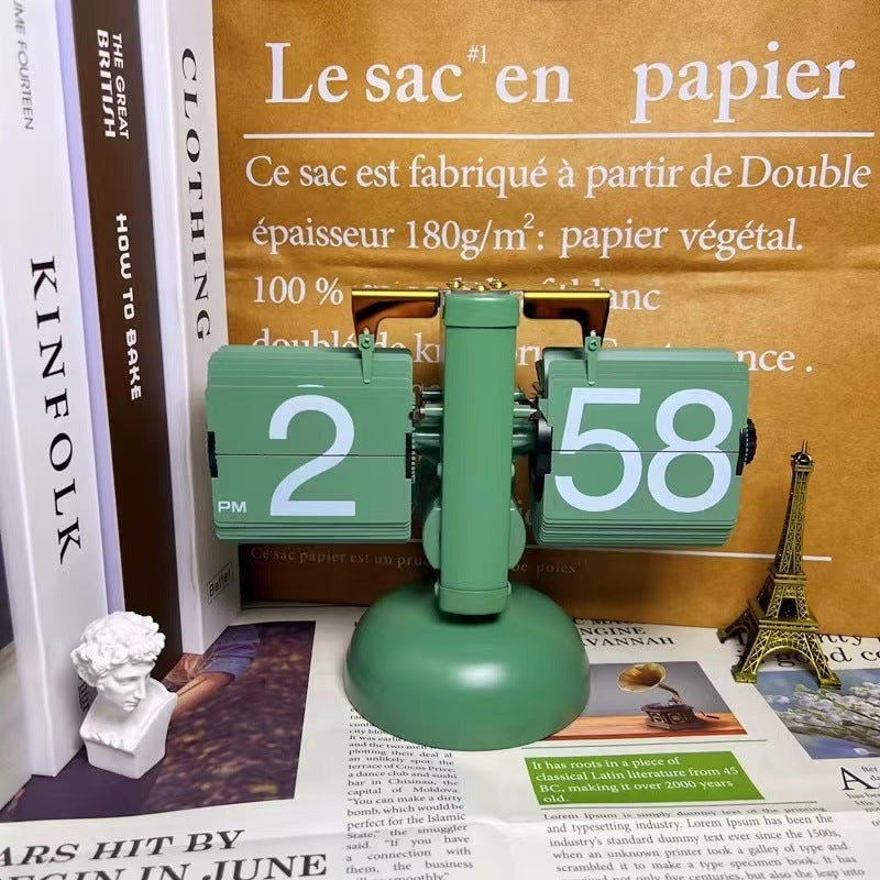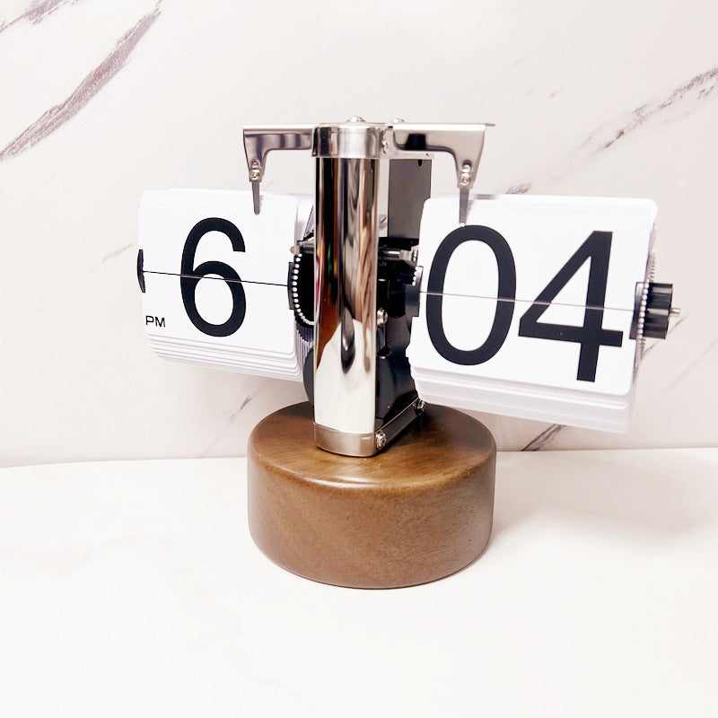 Retro Mechanical Solid Wood Automatic Flip Clock,Make every moment more tasteful